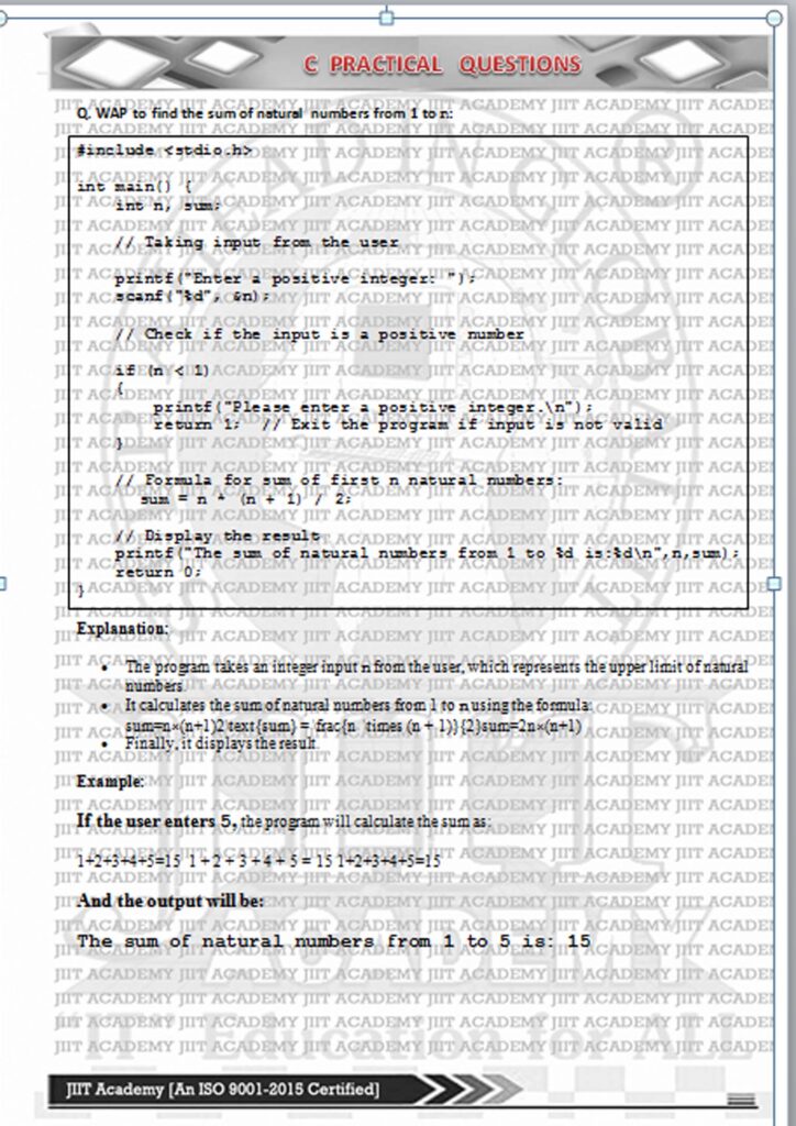 Q 1) WAP to find the sum of natural numbers from 1 to n.