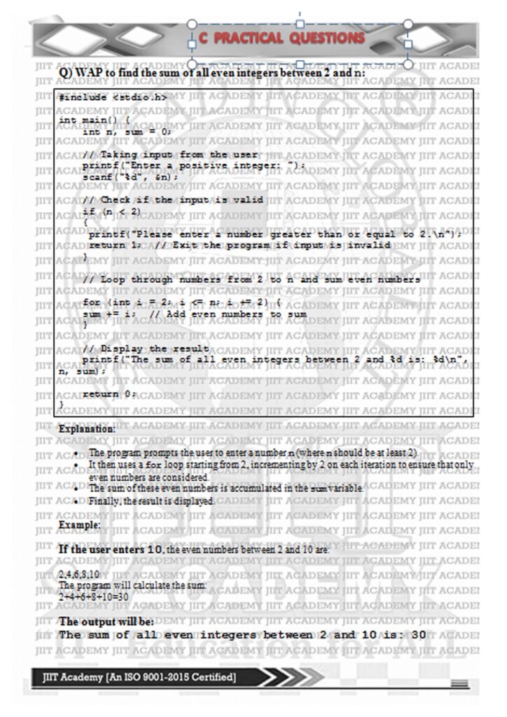 Q 2) WAP to find the sum of all even integers between 2 and n.
