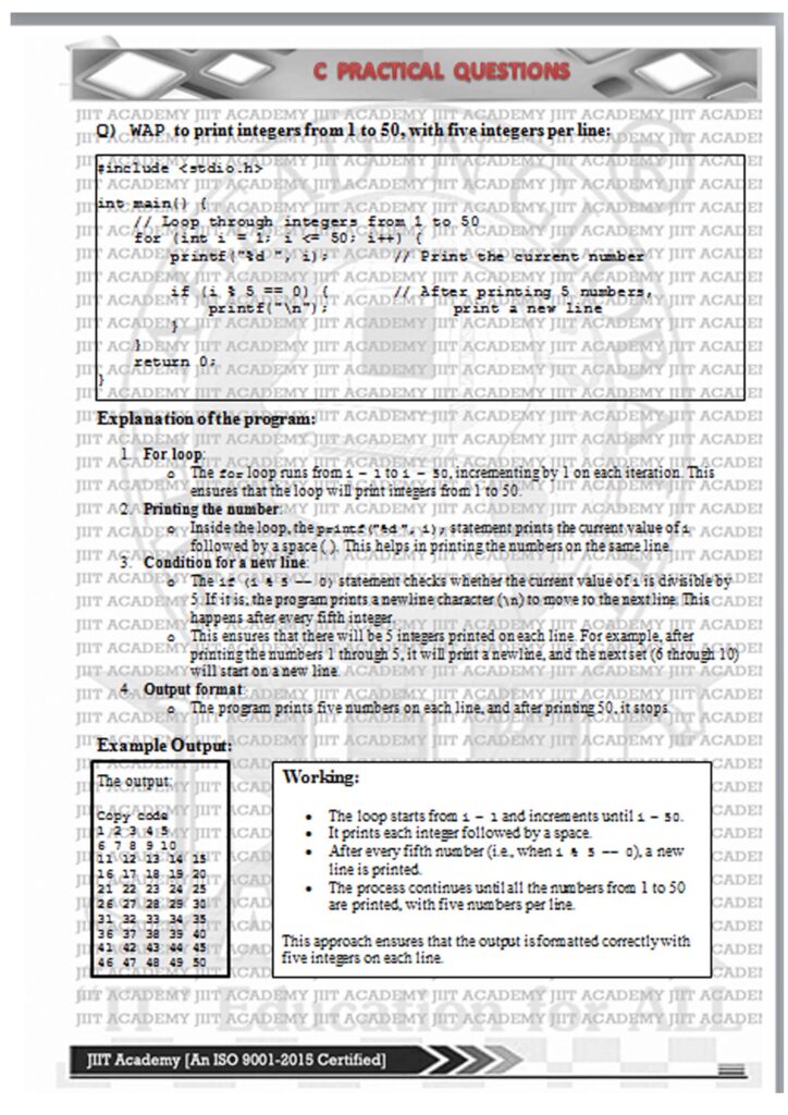 Q 3) WAP to print integers from 1 to 50, with five integers per line.