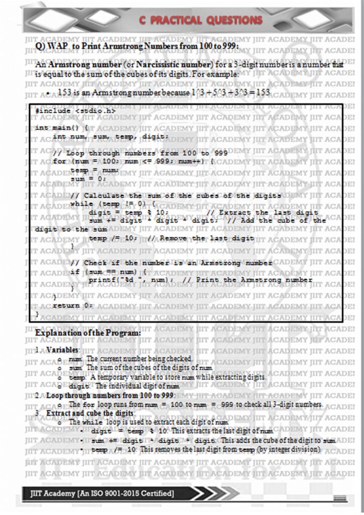 Q 5) WAP to print Armstrong Numbers from 100 to 999.